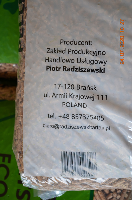 Przetwarzane w tartaku drewno opałowe poddawane jest obróbce korowania, dzięki temu trociny i zrębki użyte do produkcji pelletu pozbawione są kory i zanieczyszczeń.