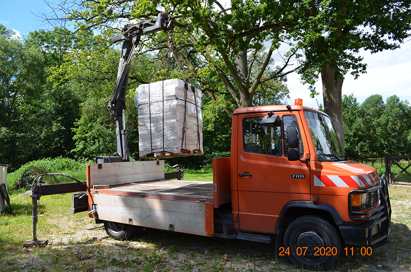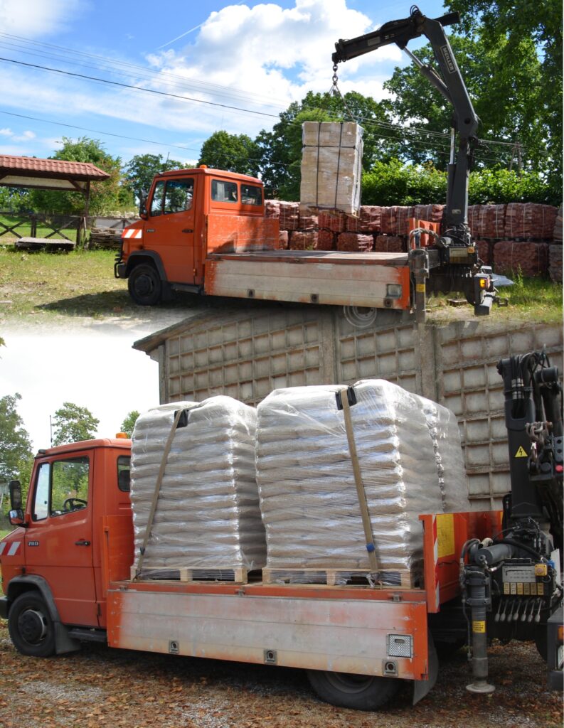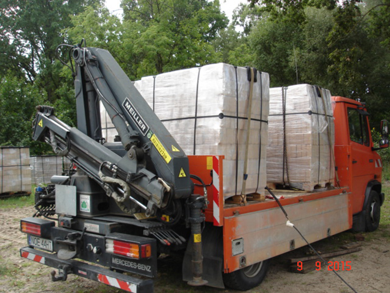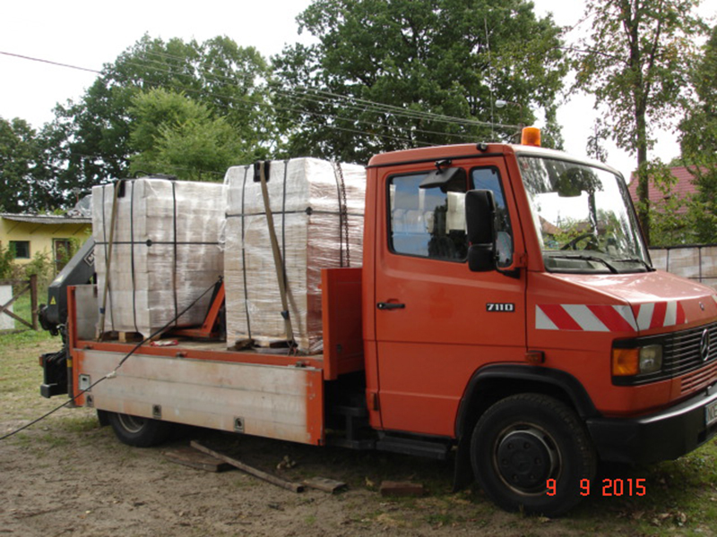 Transport i rozładunek realizujemy samochodem wyposażonym w dźwig HDS, do dyspozycji wózek paletowy elektryczny.